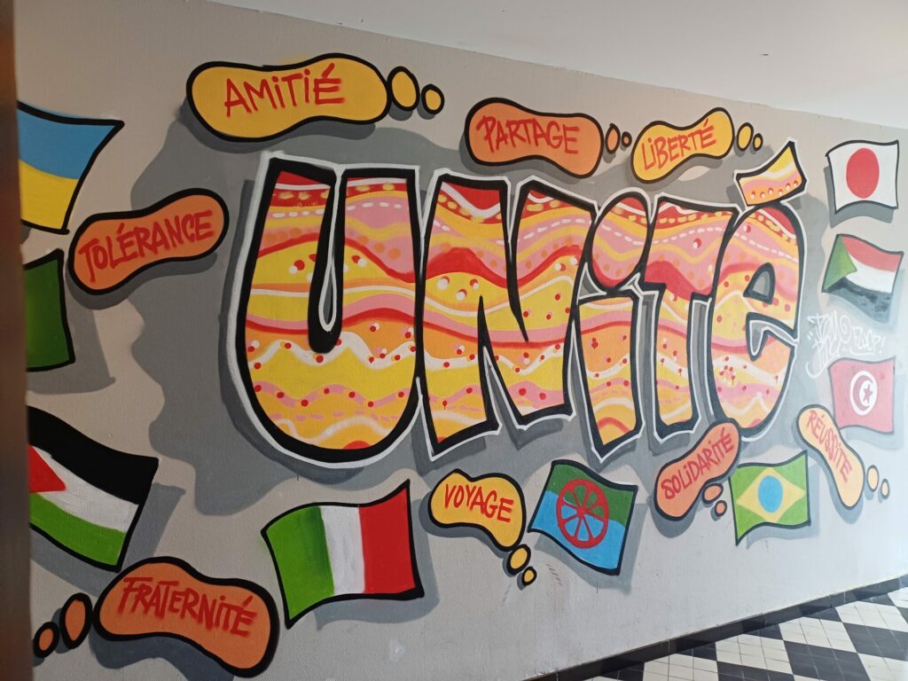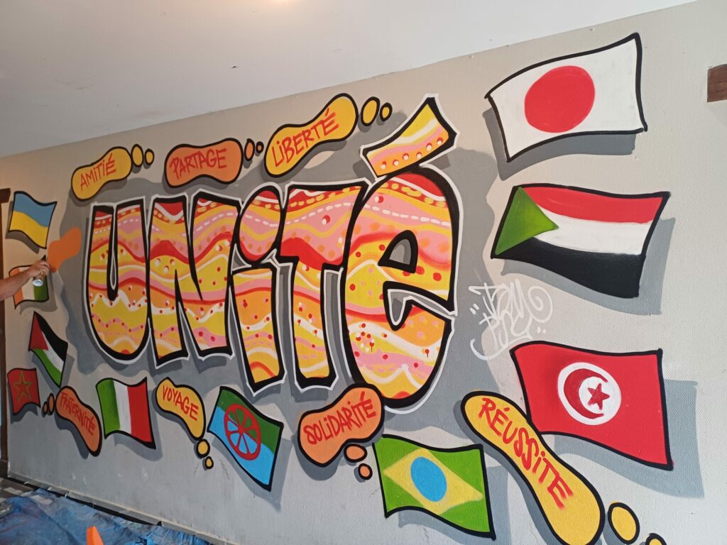 Si un ou deux avaient déjà expérimenté la pratique du graff, pour les autres ce fut une belle découverte, une initiation artistique inspirante. Tous disent avoir aimé participer à cette activité créative parce qu’elle leur a demandé de réfléchir ensemble au message que porterait leur fresque et qu’elle a abouti à une belle œuvre collective, une œuvre qui leur ressemblait tout en les rassemblant.